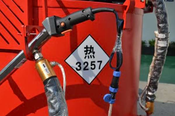 When the material door is opened to add seam filling material, the mixer automatically stops mixing to ensure the safety of the equipment transmission part and personnel; Equipped with dual safety chains during walking to prevent equipment detachment accidents during towing and walking.