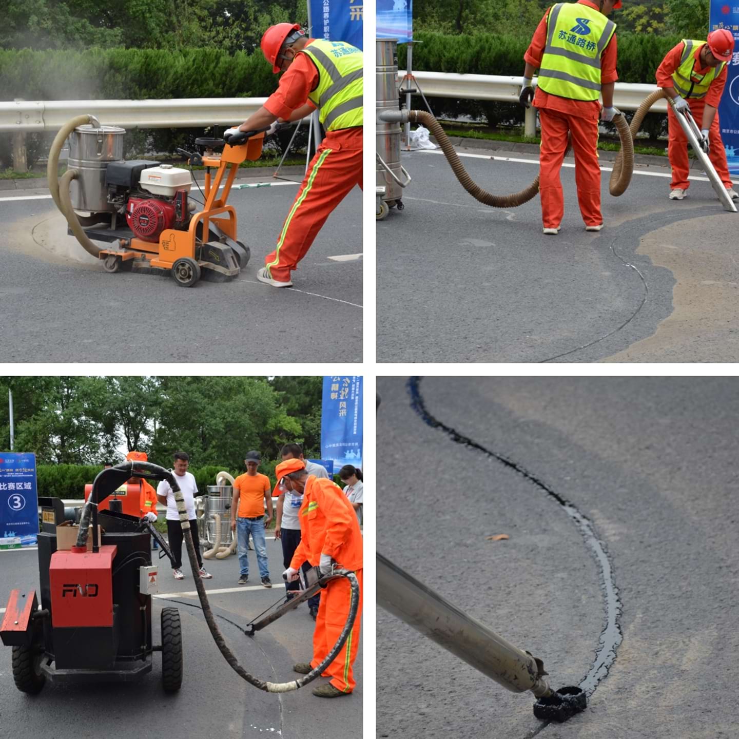 Preparation work. Check the grooving machine and sealing machine to ensure their technical condition is good; Determine the joint filling design plan based on the specific situation of road cracks; Start the sealing machine and add sealant to the sealant heating tank. Heat and stir the sealant to 193 ℃, not exceeding 204 ℃; During the heating period, the sealing machine will be towed behind the truck, and the sealant, isolation pier, indicator signs, grooving machine, and vacuum equipment will be installed on the truck and dragged to the designated construction site. Half of the road will be enclosed as a construction area.