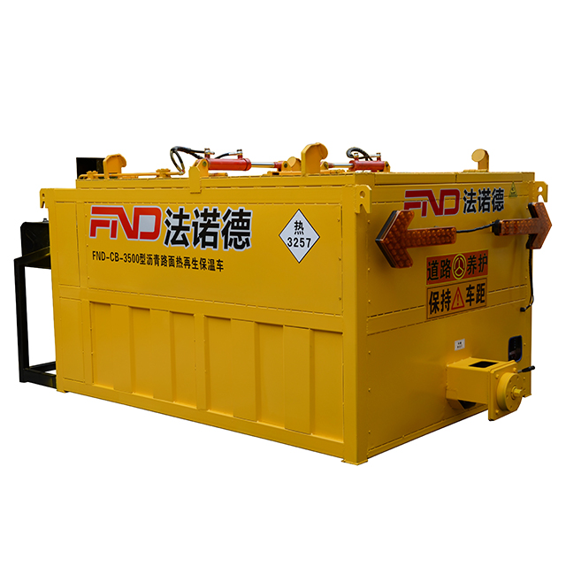 ![]() | The FND-CB-3500 asphalt recycling material heating and warming hot box is a professional comprehensive asphalt road recycling insulation equipment. It mainly consists of a burner burning thermal oil indirect heating system, thermal oil circulation system, spiral discharge system, storage box, etc., with complete heating and insulation functions for asphalt mixtures. Suitable for repairing various asphalt pavement diseases on high-grade highways, airports, municipal roads, and other roads nationwide. Construction is not restricted by seasons. We have achieved the fast arrival, repair, and evacuation required for highway maintenance. It has the characteristics of high efficiency, low energy consumption, minimal pollution, and easy operation. |